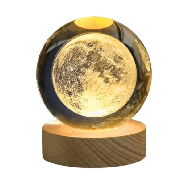 Lámpara De Mesa Led Bola De Cristal 8″ Luna 3000k Dc5v Usb 1w 6m Garantia